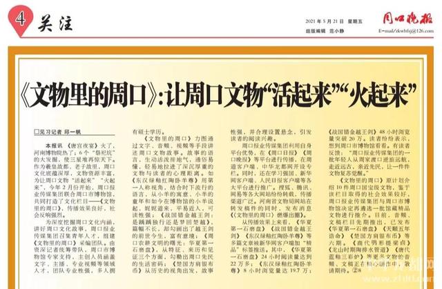 这个系列的作品,不仅在《周口日报》《周口晚报》刊发,在周道客户端、中华龙都网开设了专栏,还在学习强国、今日头条、新华网客户端、人民日报客户端等各大平台进行推广,多篇文章被新华网客户端加“精品”标签推送。同时,搜狐、腾讯、网易等各大网站纷纷转载,传播渠道广泛。河南省文物局网站在转发稿件的同时,也发出消息《〈文物里的周口〉燃爆出圈》。