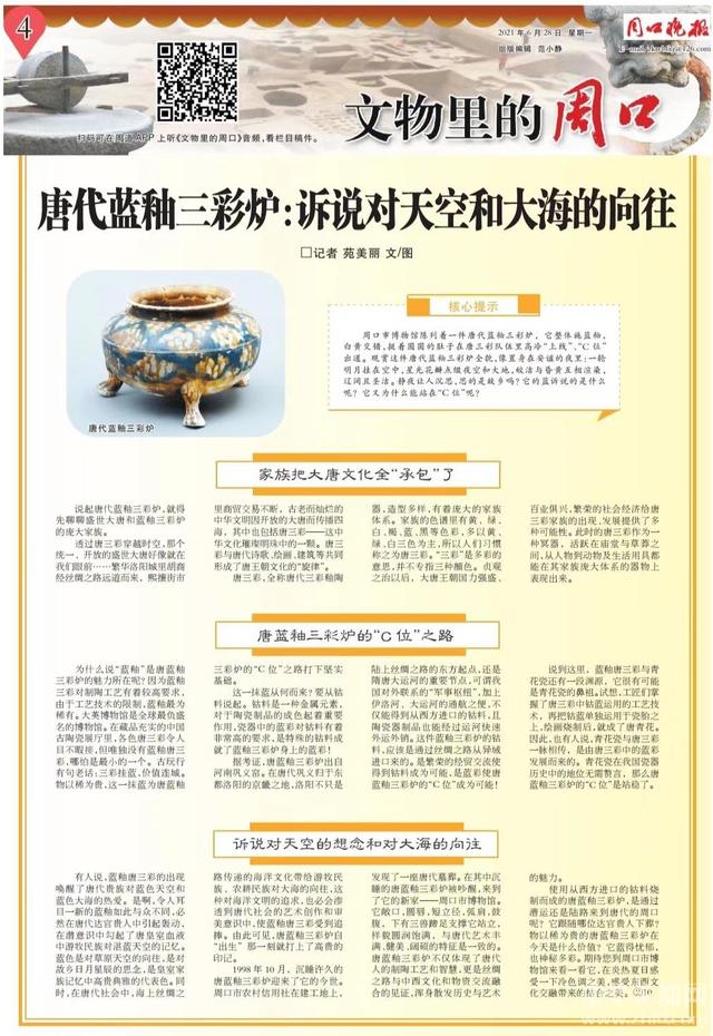 “文物里的周口”系列介绍了十五种文物,也只是妄图“窥斑见豹”,只盼大家因此多出几分去了解的兴趣——博物馆就在那里,博物馆里更多的文物也都静静地等在那里。去看看吧,看看我们记者笔下文物的样子,是不是你想像的样子,是不是你看到的样子。也去看看更多我们没有写到的,到底是什么样子。