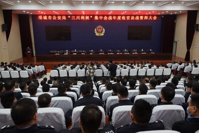 为确保今年全年打防犯罪工作圆满收官为明年工作奠定坚实基础,按照周口市公安局的工作部署,10月25日上午,项城市公安局在一楼会议室召开“三川利剑”集中会战年度收官决战誓师大会。副市长、公安局长万东伟出席会议并讲话,局党委副书记、副局长陈重主持,在项局党委班子成员,驻市公安局纪检监察组组长闫明,局直各科所队室负责人,受表彰的先进集体代表和先进个人及各单位部分民警、辅警共计400余人参加会议。