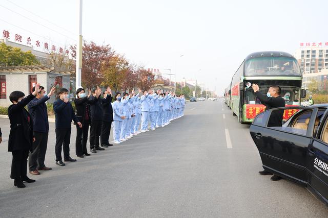 “同‘周’共济,共‘郸’风雨。再见!”4辆大巴车出发时,大家一致喊出了这样的口号。郸城县公安局交警大队派出警车开道保安全,县卫健委派出一辆120急救车做好医护保障。②15