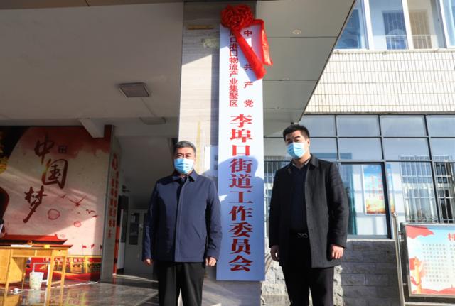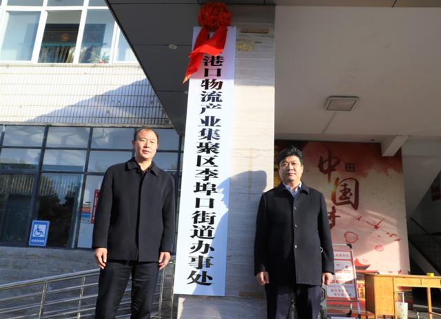 港区党委书记孙鹏,李埠口街道党工委书记贾申为中国共产党周口港口物流产业集聚区李埠口街道工作委员会揭牌;港区党委副书记、管委会主任胡军华,李埠口街道办事处主任邓志强为周口港口物流产业集聚区李埠口街道办事处揭牌。
