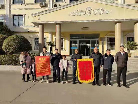 11月30日,在太康县交通运输综合行政执法大队,一名中年男子携全家人送来锦旗,以此感谢该执法大队交警热情相助。