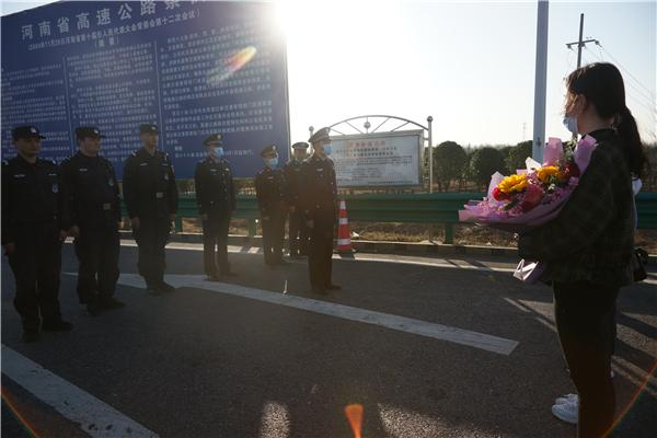 12月2日上午8时许,项城市公安局在大广高速项城西收费站隆重举行仪式,热烈欢迎“7·12”专案组民警凯旋。副市长、公安局长万东伟,局党委副书记、副局长陈重,局党委委员王济岭等领导前往迎接,并向专案组成员致以崇高的敬意。民警代表献上鲜花致谢。