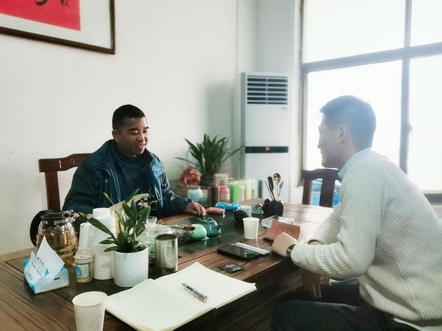 记者沈铎采访丁军 严一明 摄