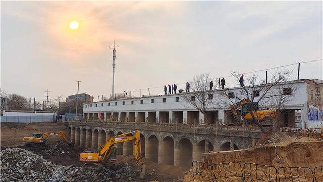 2月26日,记者在扶沟北关大闸附近看到,数十辆大型挖掘机正在紧张有序施工,施工围堰已完工,各通行路口都实行了封闭管控,拆除现场秩序井然有序,安全措施到位。老闸拆除、新闸重建工作正在同步紧张进行中。