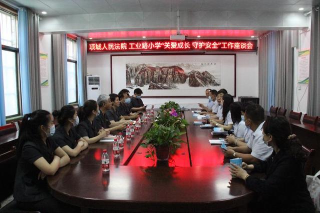 座谈会上,项城市工业路小学副校长王春雷为项城法院少年审判团队负责人刘鑫颁发法治副校长聘书,王燕代表项城法院为学校赠送了未成年保护法宣传口袋书,与会法官与教师代表围绕“关爱成长 守护安全”主题进行了深入沟通交流。