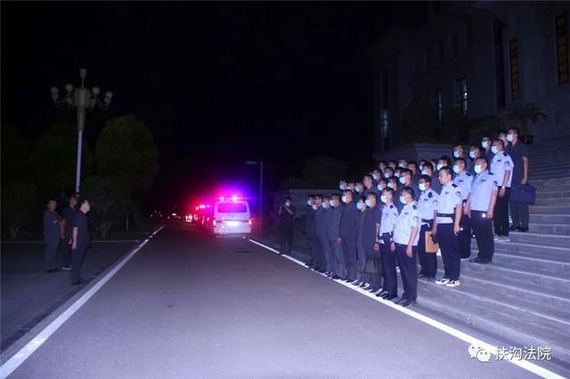 当日凌晨5时许,室外气温燥热,天空还是漆黑一片,扶沟法院内却警灯闪烁、灯火通明,参加此次执行行动的参战干警在审判大楼前整齐列队,整装待发,全体执行干警精神抖擞、斗志昂扬。随着党组书记、院长吴冀原“‘六十天集中执行攻坚’专项活动开始,全体出发!”的命令下达,参战干警兵分7路,奔赴失信被执行人藏身地开展执行行动。