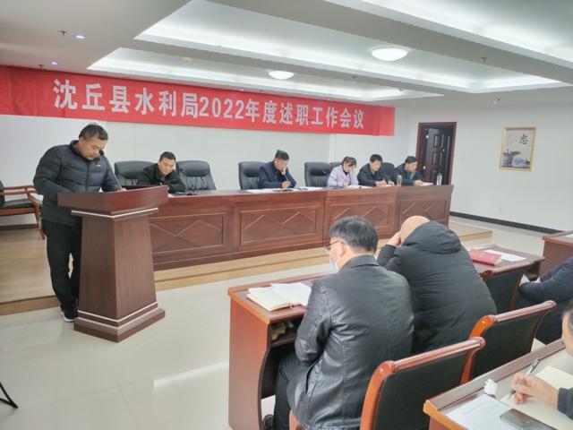 2月8日,沈丘县水利局召开2022年度述职会议,听取局机关各股室、局属二级单位和水厂一年来的履职情况,总结工作成绩,梳理存在问题,提出工作要求,为推动2023年水利系统工作高质量发展提供根本遵循。县水利局局长李广君出席会议。