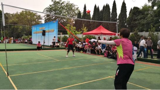 空竹球是第八届河南省民族运动会首次设置的竞赛项目。该项目是近年来空竹界兴起的一项崭新的运动,是在单头空竹抛接的基础上结合羽毛球、排球、网球等非身体接触运动项目的比赛规则,融合抖空竹运动而开拓创新的一种竞技运动。