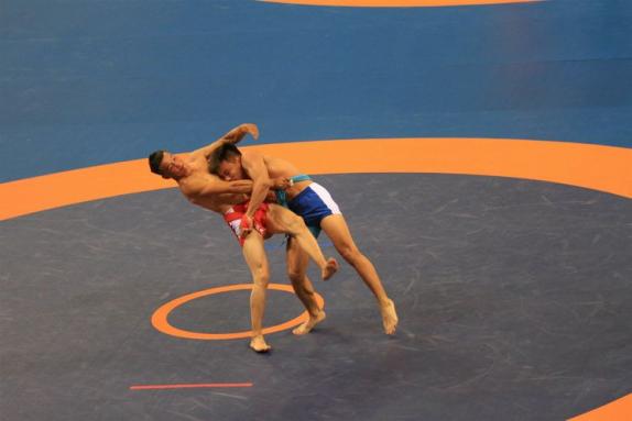 摔跤是两人徒手直接接触、相互搂抱或抓握使用各种技术把对方摔倒的一项民族的体育传统运动。自1953年的第一届全国少数民族传统体育运动会开始,摔跤就成为了全国少数民族传统体育运动会的竞赛项目,是元老级的竞赛项目。
