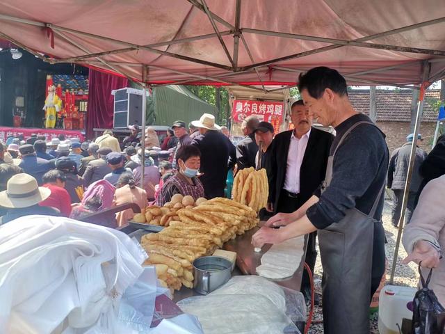 杨湖口镇郭奶奶庙村距离任堂村4公里,村民郭才良说,只要任堂村有庙会,他都会和妻子一起来做炸油条、炸糖糕生意。“逛庙会的人很多,生意也不错,每天平均收入都在1000元以上”。