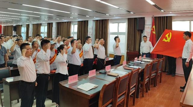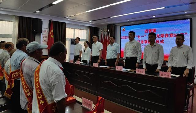 仪式上,全体参会人员共同奏唱国歌,面向党旗再次重温入党誓词;镇党委委员为党龄50年以上老党员颁发了“光荣在党50年”纪念章;部分村支部书记和党员代表结合支部工作和自身经历,进行了党建工作交流发言。