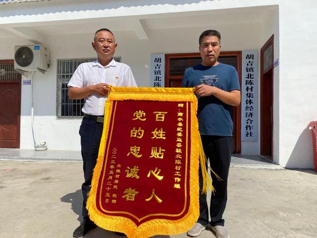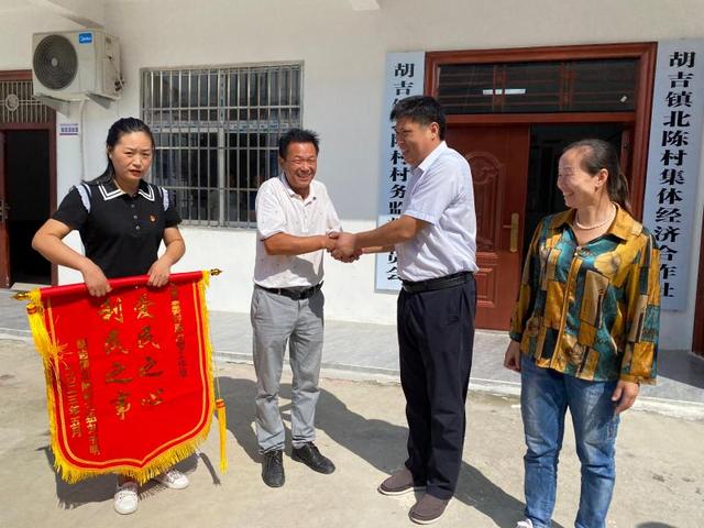 有道是:无巧不成书,无缘不相逢。 日前,在商水县胡吉镇北陈村党群服务中心会议室里,县乡村干部正开会。村民刘书明、刘全喜等不约而同地先后赶到送来了一面面锦旗,大家连忙出门相迎,院子内外顿时热闹起来,欢声笑语此起彼伏。