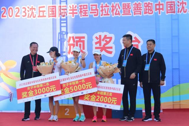“1小时22分00秒!”半程马拉松女子组第一名高明枝冲过终点,观众席响起一阵掌声和喝彩声。经过激烈角逐,产生了男子组一、二、三等奖和女子组一、二、三等奖。