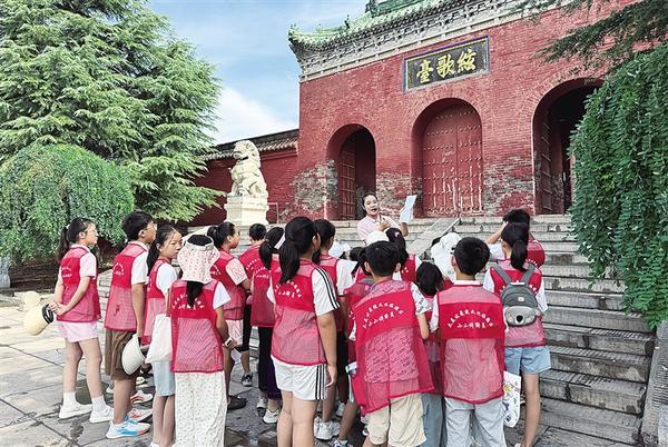 讲解员为“小小讲解员”集中培训。8月11日,太昊伏羲陵文化旅游区“小小讲解员”培训活动圆满落幕。此次活动中,淮阳区30余名青少年怀揣着对家乡文化的热爱,经过为期一周的集中培训,具备基本的讲解能力,为传承淮阳千年文脉注入了新鲜血液。记者 侯俊豫 通讯员 庄秋薇 摄