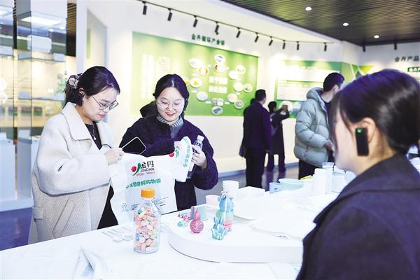 近年来,郸城县坚持科技创新推进生物可降解材料研发和生产,把一粒粒玉米变成了生物可降解产品,形成带动县域经济发展的产业链。图为郸城县金丹科技的生物可降解产品展示活动现场。记者 徐松 摄