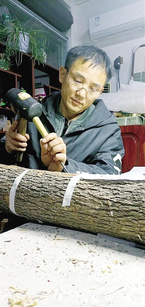 “叮叮当当、叮叮咣咣……”12月17日,周口品格创意工作室里,刨花如碎雪般簌簌落在店主朱燕领的工装上。他俯身于一块老榆木前,手中的平刀在木纹间灵活游走,不多时,“厚德载物”四个字便带着温润的弧度浮现。招牌内容立体感十足,线条饱满却不失劲道,书法的笔墨韵味与手工雕刻的肌理质感浑然一体。