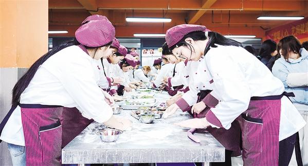 在周口城市职业学院,记者看到,清晨的食堂被布置得温馨热闹。长长的操作台上,面团、各式馅料和工具摆放整齐。在后勤人员的指导下,师生们化身“厨房能手”,和面、擀皮、包馅、捏边……大家分工协作,动作从生疏到渐渐娴熟。