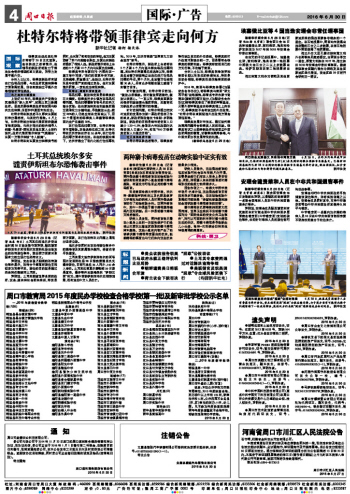 一、2015年度检查合格学校(125) 郸城县(29) 郸城县吴台镇双语中学 郸城县吴台镇方营逸夫学校 郸城县华文学校 郸城县巴集三中 郸城县才源高中 郸城县华宇中学 郸城县光明学校 郸城县才源中学 郸城县蓝天中学 郸城县又铭中学 郸城县白马春蕾中学 郸城县南丰爱心学校 郸城县英博学校 郸城县郸城中学 郸城县实验高中 郸城县希望高级中学 郸城县京华学校 郸城县新世纪中学 郸城县城郊乡文灿中学 郸城县育才中学 郸城县城关镇二中 郸城县英才学校 郸城县第一中学 郸城县经委中学 郸城县华阳中学 郸城县神龙文武学校 郸城县新城中等职业学校 郸城县科技中等专业学校 郸城县新潮职业中等专业学校 太康县(8) 太康县华夏外国语高级中学 太康县华夏中学 太康县永生中学 太康县德文中学 太康县东方中学 太康县世纪新星双语学校 太康县许楼职专 太康县中原人才职专 淮阳县(19) 淮阳县泰斗学校 淮阳县育华学校 淮阳县东升中学 淮阳县第二高级中学 淮阳县四通镇外国语中学 淮阳县阳光中学 淮阳县羲城中学 淮阳县豫东少林文武学校 淮阳县外国语实验中学 淮阳县鲁台镇新星学校 淮阳县豆门德才学校 淮阳外国语中学 淮阳新站镇实验中学 淮阳县淮阳第一高级中学 淮阳县龙翔中学 淮阳明德实验学校 淮阳恒达学校 淮阳白楼人中分校 淮阳县永昌中学 商水县(18) 商水县新世纪学校 商水县融辉黄冈学校 商水县立才学校 商水县恒翔双语学校 周口外国语中学 商水县豫豪中英文学校 商水县华文学校 商水县外国语学校 商水县博林学校 商水县平店双英学校 商水县固墙四中 商水县新兴双语学校 商水县宏大双语学校 商水县豫东精致双语学校 商水县世纪英才学校 商水县大武众信学校 商水县第三中学 周口市中英文学校 项城市(17) 项城市正泰博文中学 项城市外国语中学 项城市新华学校 项城市红旗学校 项城市育才中学 项城市清华育英学校 项城市三高初中部 项城市第三高级中学 项城市宏林学校 项城市官会镇力迈中学 项城市官会镇昌福学校 项城市贾岭镇红太阳学校 项城市贾岭镇育英学校 项城市高寺镇松源博士学校 项城市范集镇鸿志学校 项城市新世纪中等职业学校 项城市杂技艺术学校 沈丘县(16) 沈丘县槐店回族镇城东中学 沈丘县洪山乡兴洪希望学校 沈丘县志远中学 沈丘县中英文学校 沈丘县骥才学校 沈丘县万龙学校 沈丘县醒民高级中学 沈丘县县直高级中学 沈丘县全峰完中 沈丘县老城镇顺达学校 沈丘县付井镇东方学校 沈丘县付井镇金钥匙学校 沈丘县纸店私立育新学校 沈丘县实验中学 沈丘县风华学校 沈丘县外语中学 川汇区(3) 周口新星学校 周口枫城学校 周口市实验中学 西华县(2) 西华县青华实验学校 西华县箕城高中 扶沟县(2) 扶沟县秋实中学 扶沟县鸿昌中等职业学校 市直学校(11) 周口中学 周口市育新高中 周口市颍河中学(小学、初中部) 周口市龙水高中 周口市锦城高级中学 周口市天骄职专 周口市海萍职专 周口市海燕职专 周口市联营电脑职专 周口市世纪美容美发学校 周口市三通职专(在建) 二、2015年度新审批学校(5) 郸城县第一中学 商水县博文双语学校 商水县厚德先锋学校 太康县世纪新星学校(初中部) 周口市升盛幼儿园(市直) 说明:本批公示学校为市教育局审批、2015年度检查合格、民办初中以上学校125所,新审批学校5所。公示范围不含各县(市、区)审批的民办小学、幼儿园。凡不参加年度检查或连续两年年度检查整改不合格学校,将被依法取消办学资格。 2016年6月30日