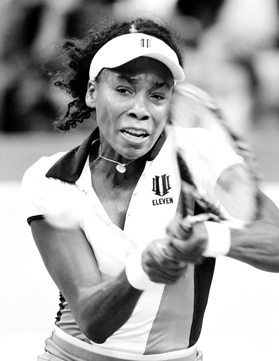 10月4日,美国选手大威廉姆斯在比赛中回球。当日,在WTA斯图加特网球公开赛单打半决赛中,大威廉姆斯以1∶2不敌塞尔维亚选手扬科维奇,无缘决赛。新华社/路透
