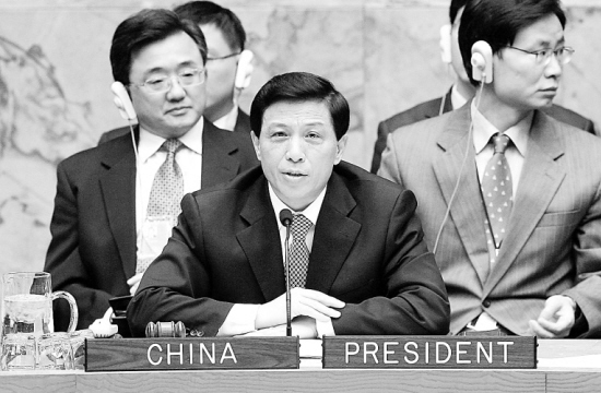 安理会呼吁各国积极参与打击索马里海盗行为 10月7日,在美国纽约联合国总部,安理会本月轮值主席、中国常驻联合国代表张业遂主持商讨打击索马里海盗行为的会议。新华社记者 侯俊 摄