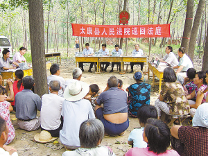 实行案件巡回制度,使典型案件的审理进入乡村。该法院鼓励法官走出办公室、走出审判厅、走进基层,有的放矢地拓展巡回审理阵地,解决群众实际困难。选取那些社会影响大,具有代表性的典型案件或者当事人生活困难、行动不便、当事人所在地交通不便的案件,到案件发生或者当事人所在地进行巡回审理,审判人员通过判后说法,针对案件的特点向旁听群众现场讲解与案件相关的法律知识,以此来提高群众的法律素质。