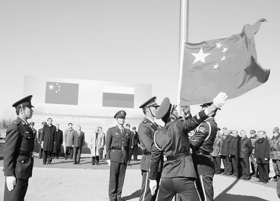 10月14日,中俄界桩揭幕仪式上升起中华人民共和国国旗。当日,中俄双方在黑瞎子岛举行中华人民共和国与俄罗斯联邦国界东段界桩揭幕仪式。两国边防部队已开始按双方勘定的国界线履行防务。 新华社发
