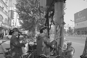 为了创建中国优秀旅游城市,使市容更加整洁,城市管理人员分片包段,对市区大街小巷的各种小广告、城市“牛皮癣”进行清理。 记者 孙安平 实习生 刘雷 摄