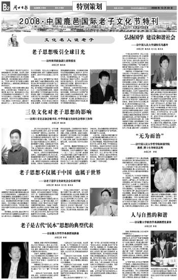 钱耕森说,老子借圣人之口,对于民众的生存状态与发展趋势以及应有的标准,提出了“化”、“正”、“富”、“朴”四点要求。