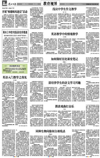 在教学过程中,引导学生由单一的语文教学步入广阔的语文学习空间,在学习语文知识的同时也要学会做人,在学习知识的同时养成良好的学习习惯,在领会知识的同时提高自身的综合素质,从而促进自我人格的全面完善,这已经成为语文教学的重中之重。因此,在语文教学中,教师要以语文能力训练为核心,开展一系列丰富多彩的课外活动:如演讲比赛、辩论会、办墙报、手抄报、书法比赛、作文大赛等,这些活动能极大地激发学生的学习兴趣。
