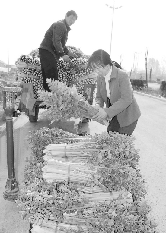科学管理、优良品质,使得鹿邑县卫真办事处的西芹在地头就被菜商收购了。该县深挖潜力,帮扶群众增收创收,拓宽了致富路。 (蒋保庆 陈强 摄)