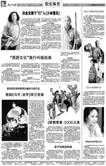 对于“借父成名”的说法,洪天照大方地表示并不介意。他说,自己在武打方面超越不了父亲,要走其他道路。“别觉得我年纪小没有志向,我将来会让大家不再称呼我是洪金宝的儿子,而是称呼洪金宝是洪天照的父亲。我想多拍些文艺电影,锻炼自己的演技。” (一丁)