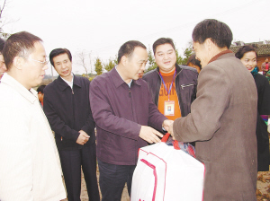 天刚下过雨,蜿蜒曲折的丘陵小道十分泥泞。毛超峰来到西屏乡四季村52岁的低保户刘长兴家。刘长兴孤身一人,身患肾结石、心肌梗塞等疾病,家里的房屋在地震中全部倒塌。在当地党委、政府的支持下,刘长兴靠政府拨款和我市援建的款项开始重建家园。目前,他家3间小青瓦房的地基已经打好,预计春节前可以建好。接过毛超峰送给他的过冬棉衣和被褥,刘长兴感动地说:“谢谢你们在千里之外还想着我们,谢谢周口人民。”