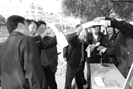 近日,商水县国税局、地税局组织工作人员分别在车站、集贸市场等人流密集地点开展识别真假发票宣传活动。通过宣传增加群众对真假发票的识别能力,维护健康稳定的社会经济秩序。 记者 王映 通讯员 魏红 摄
