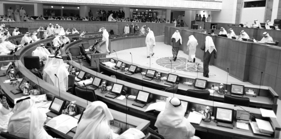 11月25日,在科威特首都科威特城,科威特内阁成员愤然离开议会会议现场。科威特首相纳赛尔·萨巴赫当日向埃米尔(国家元首)艾哈迈德·萨巴赫提出全体内阁成员辞职。首相纳赛尔是在3名议员坚持对其就伊朗一名宗教学者被允许进入科威特一事进行质询而作出该决定的。同时,3名议员还指责首相未能行使好宪法所赋予的管理国家和实现人民愿望的职责。 新华社发