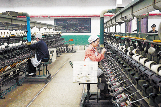 我市是全省的主要产棉地之一,拥有丰富的棉纺织原材料。扶沟、太康等县市依托这一优势,逐步形成了棉纺织工业集群。图为鑫达纺织生产车间。(记者 孙安平 摄)