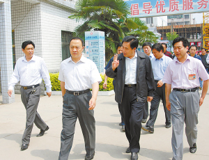 市委书记毛超峰(左二)到西华指导卫生工作