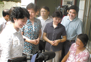 省领导孔玉芳(左一)在市委宣传部长梅宝菊(右三)的陪同下到西华视察疾病防治工作