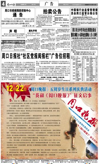 周口日报社“社区党报阅报栏”广告位招租