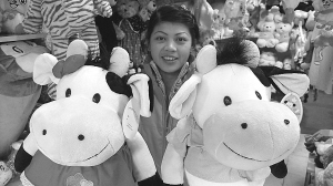 牛年临近,牛年饰品在河南开封市场上俏销,憨态可掬的牛年玩具受到年轻人和孩子的喜爱。 新华社发
