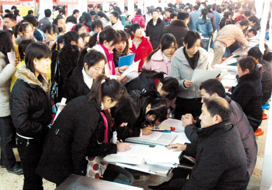 12月6日,周口市大中专毕业生供需洽谈会在周口师院北校区举行。来自省内外260多家用人单位设点纳贤,提供就业岗位3000多个。周口市各大中专院校5000多名毕业生参加了洽谈会。 (记者 王映 摄)
