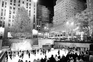纽约:圣诞景观齐竞艳 12月7日,一些游客在美国纽约洛克菲勒中心前巨大的圣诞树下溜冰。洛克菲勒中心的圣诞树号称全美最有名的圣诞树。今年选中的圣诞树是一棵77年树龄的挪威云杉,高约22米,装饰有彩灯和一颗巨大的水晶星。随着圣诞节的临近,纽约各处的景点、商场和社区纷纷装扮成一年中最靓丽的模样,吸引广大市民和游
