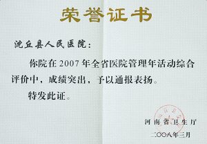 一分耕耘,一分收获。通过全院干部职工的共同努力,沈丘县人民医院先后获卫生部爱婴医院、河南省医院管理年先进医院、河南省先进党组织、卫生厅护理达标医院等荣誉。目前,沈丘县人民医院全院职工正在用自己的青春和汗水谱写着人生一曲曲动人的乐章,打造病人满意、百姓放心医院而努力。
