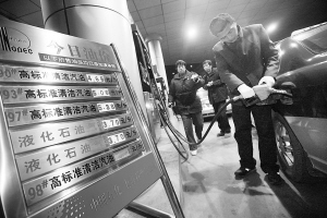 上海地区成品油价格大幅下调 12月19日,在上海市内一加油站,一名出租车司机以下调后的价格加油。国家发展改革委决定,自2008年12月19日零时起下调汽油、柴油和航空煤油的出厂价格,同时将汽油零售价每升下调0.91元,柴油零售价每升下调1.08元。此次成品油价格调整后,上海地区90号汽油降0.92元,93号汽油降0.99元,97号汽油降1.04元,0号柴油降1.18元。 新华社记者 裴鑫 摄