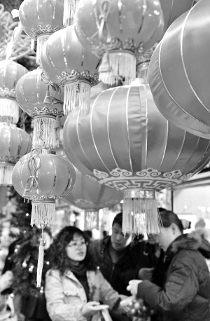 12月25日,顾客在银川市一家商城选购灯笼。新年临近,银川市各商家推出五彩缤纷的新年饰品,营造出浓浓的新年气氛。