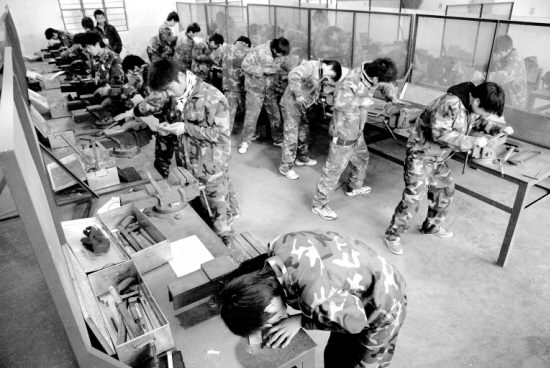 12月25日,在安徽淮南工业学校,学生们参加钳工技能比赛。当日,安徽淮南工业学校举办首届技能大赛,吸引100余名学生参加,获胜者将被就业单位优先录用。新华社发(陈彬 摄)