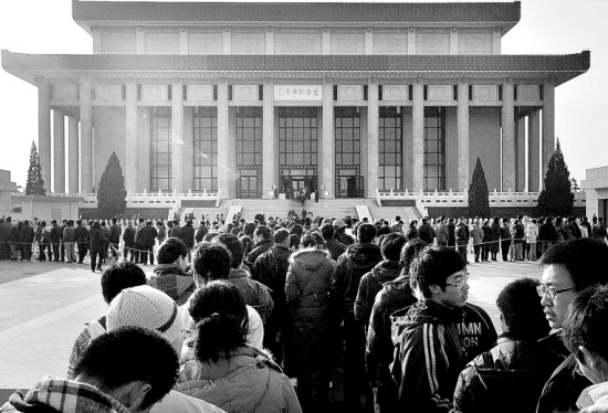 12月26日,来自各地的群众在北京毛主席纪念堂外排起长队。当日是毛泽东同志诞辰115周年纪念日。 新华社发(郭莎莎 摄)