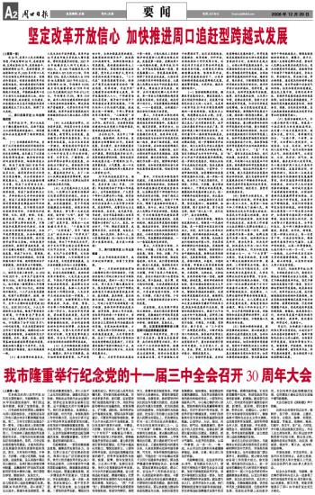 我市隆重举行纪念党的十一届三中全会召开30周年大会