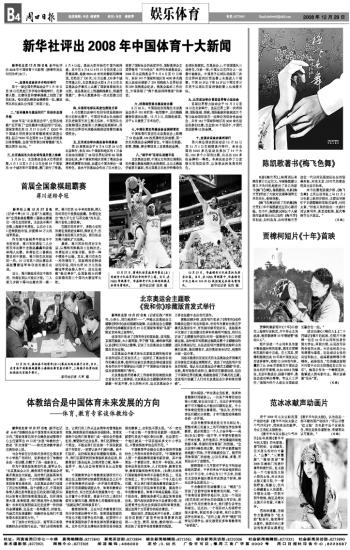 新华社评出2008年中国体育十大新闻