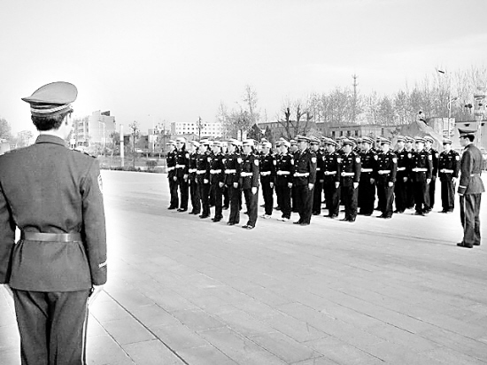 为提高公安交警的执法水平和执法形象,近日,商水县公安交警大队邀请武警教官对一线执勤交警进行强化训练,以提高交警的战斗力和队伍形象。 (郭利军 摄)